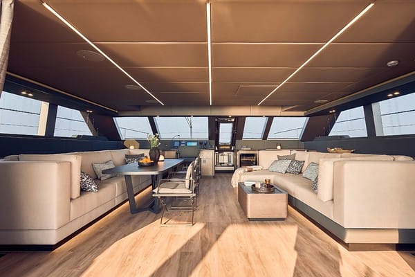 The 70’ Sunreef Power Catamaran is the ultimate blend of space, comfort, and elegance. With her wide beam and innovative design, she feels like a private floating villa. Perfect for long getaways, she offers expansive decks for lounging, chic interiors, and stability that ensures smooth sailing. Ideal for groups who want both luxury and freedom, this catamaran transforms every charter into a seamless ocean escape.